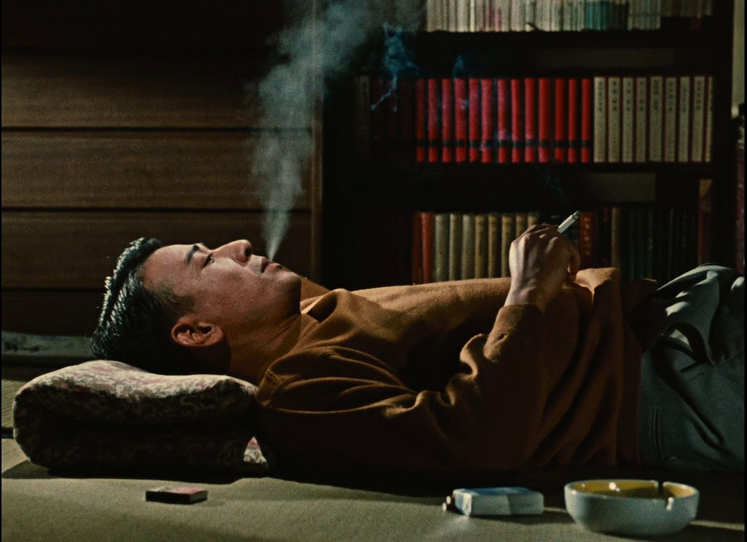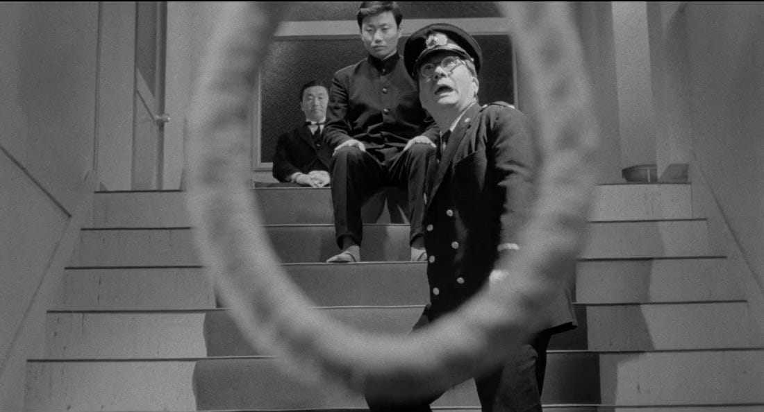 The greatest blocking+staging I’ve ever seen. After a vacuum-sealed first half, the investigation takes over the second, defined by the child’s drawing of the hideout’s view. Ah yes, let’s figure out where you can see the sun set next to a view of Mt Fuji and... go from there.