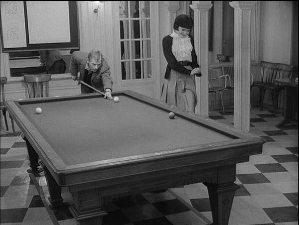 Anna Karina in two gestures: crying at Passion of Joan of Arc, and dancing around the pool table in the above screenshot. What else do you need? Comedy and tragedy.