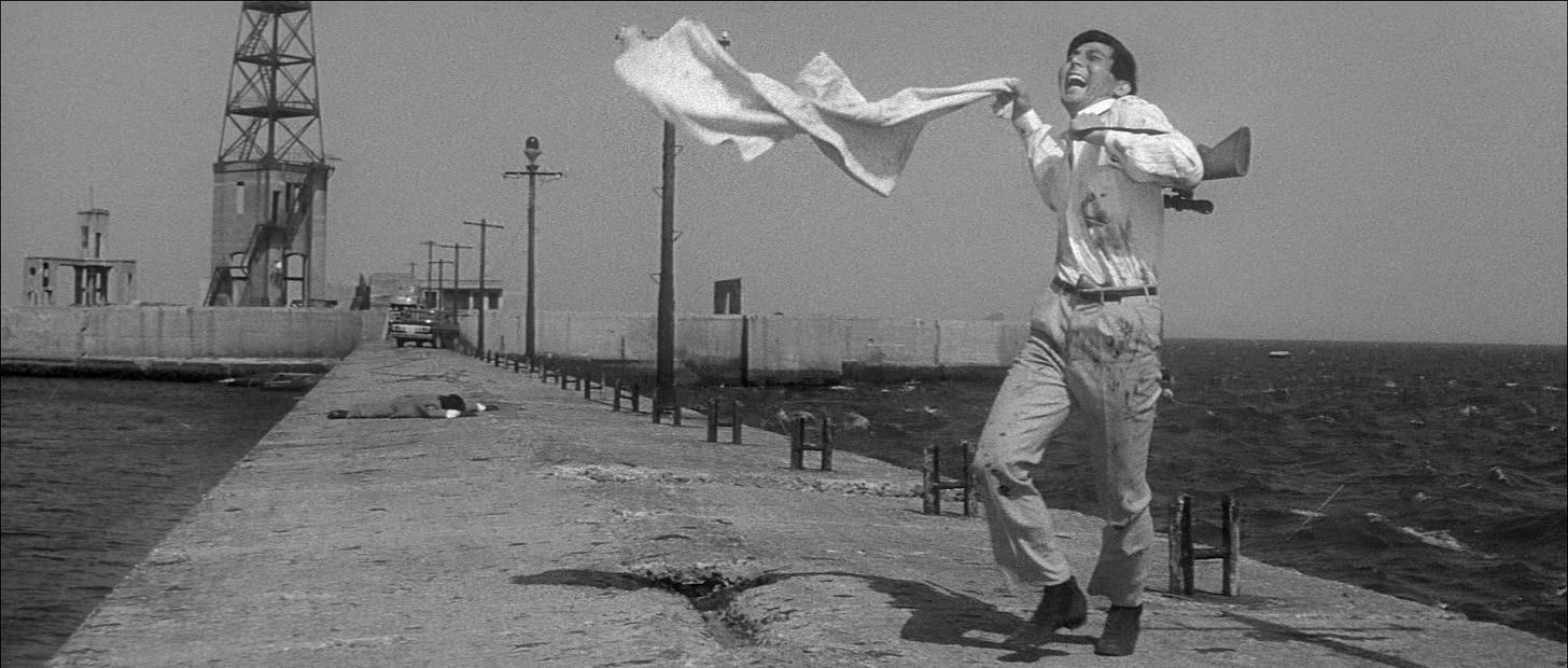 On colonialism, servitude, individuality, and the gaze of the settler. Its French New Wave-adjacent style (as well as its locations) calls into the viewer’s mind the nation of artist’s sins in Africa.