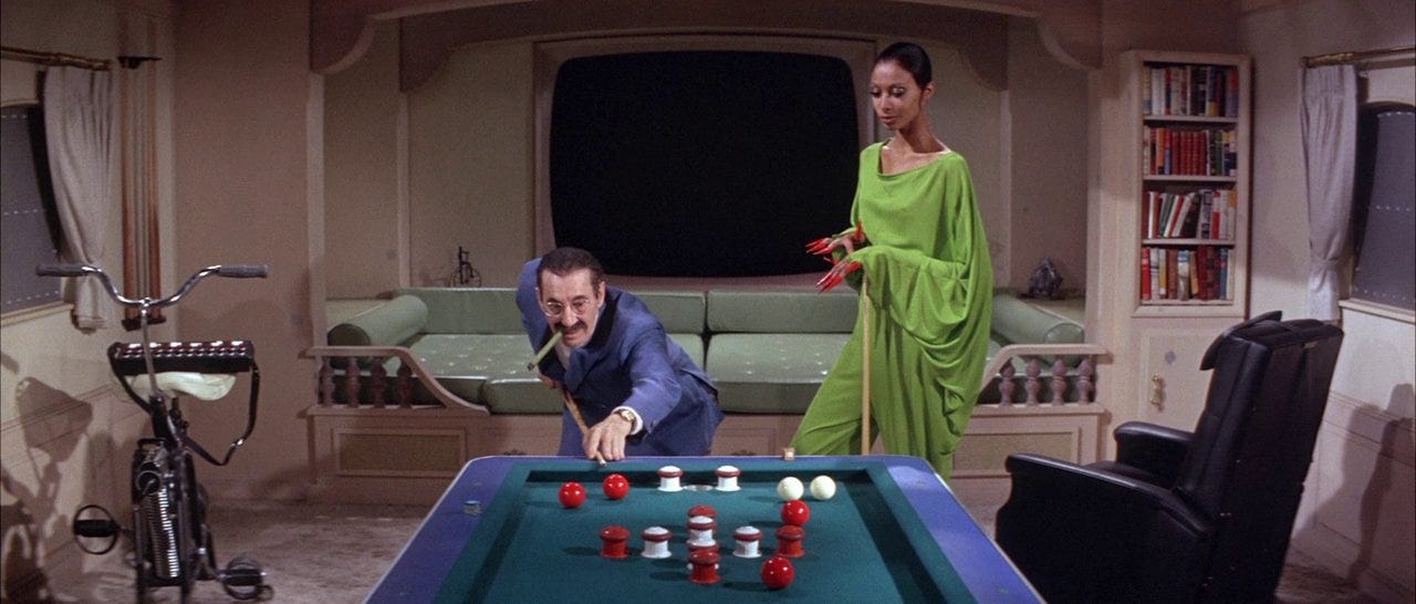 In Europe, Asia, and South America, a decade and a half had passed since WW2, and the general senses of morality and aesthetics had radically shifted. New Waves spread throughout France, Japan, Brazil, Czechoslovakia, and more, with their aesthetic and ideological influences eventually making their way stateside — particularly the visual stylings of the French as well as a few pre-wave Japanese masters. Genre cinema, particularly horror, took a leap in the 1960s as well, with some grandiose British productions as well as the Italian sleaze that would eventually influence the slasher wave. Westerns were revised, sci-fi began to think for itself, Hong Kong martial artists took a cinematic leap, and the traditional modes of audiovisual storytelling were mocked as much as they were revered. The 1960s is a cinematic decade of infinite possibilities, infinite rabbit-holes, infinite pleasure for a viewer who has not yet discovered the medium’s history. A viewer can work backwards or forwards from the 1960s, whether they want to see what Kurosawa and Ford were up to before High and Low and Liberty Valance, or where Truffaut went after Jules et Jim. These movies are not “old” [pejorative], they are “good” [time-based].