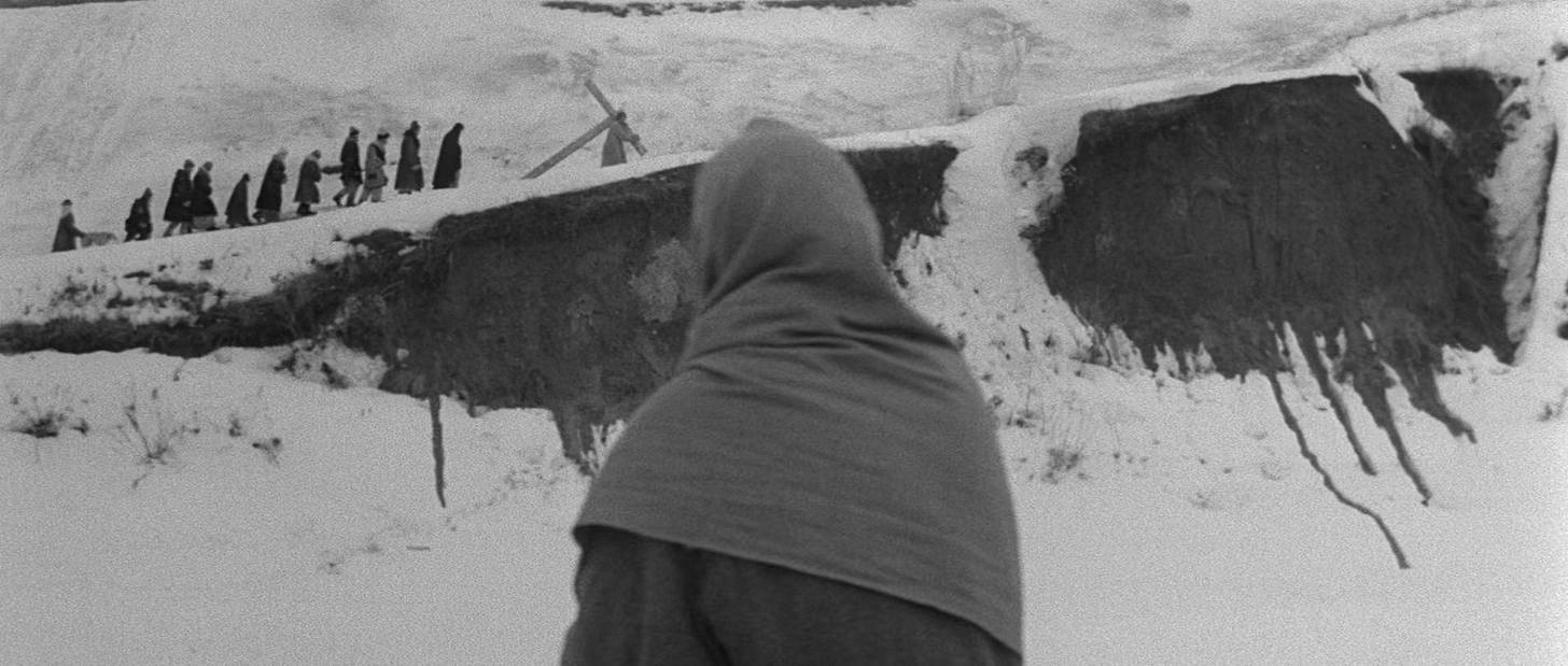 The story of Christ, told through a combination of neorealist and new-wave-adjacent expressive means.