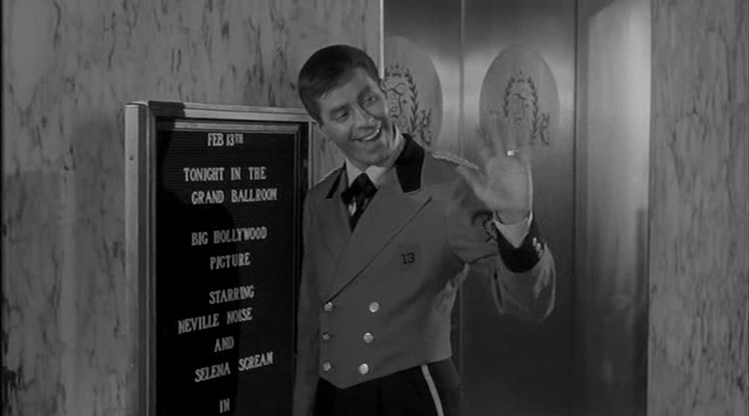 The first film by Jerry Lewis The Director, made on a minuscule budget at a Florida hotel where Lewis was performing his nightclub routine after shoot days wrapped. An inspiration, one that plays by as few rules as Godard’s debut from the same year.