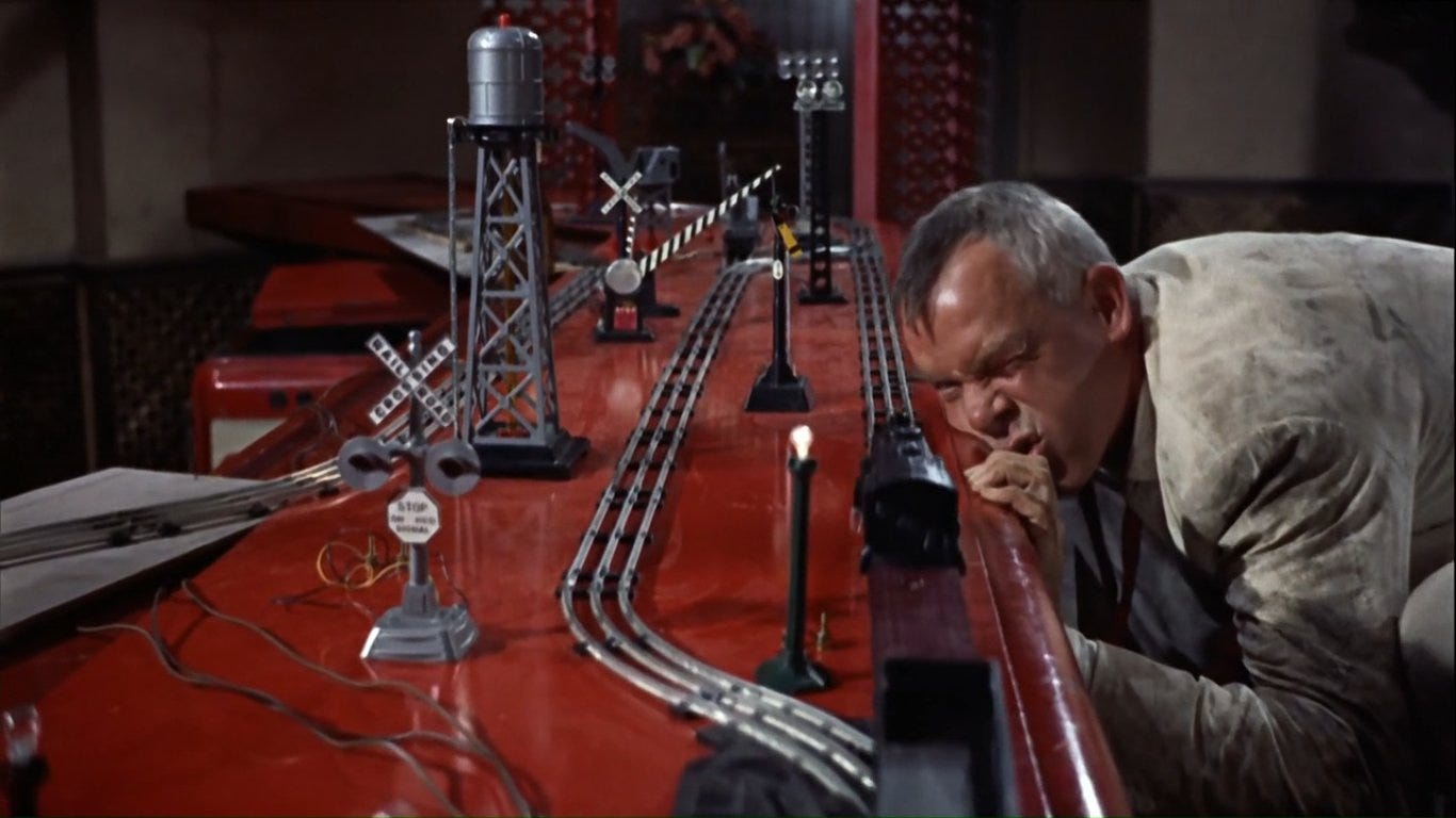 The railroad tracks of progress. Sergio Leone elevates his craft from the exploitation stylings of the fantastic dollars trilogy to a Hollywood co-production that uses the American narrative and actors as more than novelty. Henry Fonda is Abraham Lincoln, right? No, he’s the cruelest villain you’ll ever see.