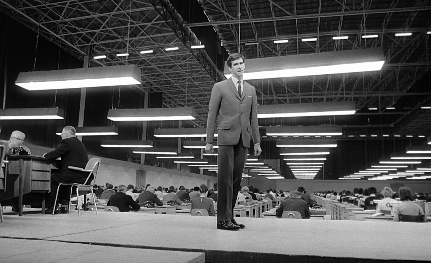 After an expressionist silent masterpiece and a groundbreaking early sound film, Fritz Lang took nearly 3 decades off of the Mabuse series while working outside of Germany. He then came back and finished off the trilogy/his career with this stripped down, barebones, essentialist surveillance film.