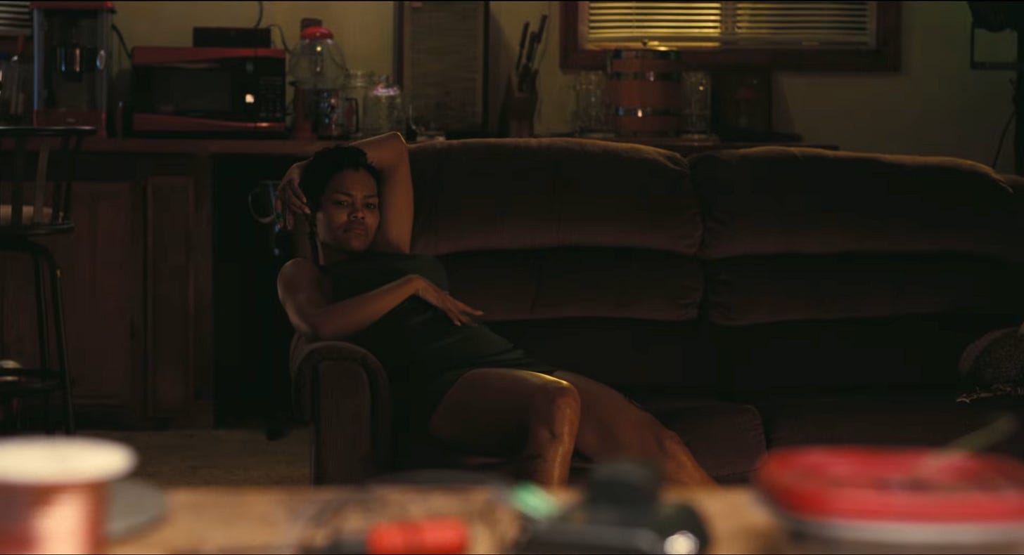 So, what’s this one all about, then? Leonardo DiCaprio’s gringo zapata Ghetto Pat – later renamed Bob Ferguson – and his lover, Perfidia Beverly Hills (Teyana Taylor), are with the French 75, a post-new-left-adjacent liberation movement focusing on direct action and guerilla tactics1. On their tail is Sean Penn’s Colonel Lockjaw, who Perfidia seduces at the opening detention center liberation (with an incredible visual gag involving Lockjaw’s hard-on) before eventually falling prey to him at a bank heist foiled by downtown traffic. She’s first placed in the witness protection program, before going rogue. Lockjaw has very clearly transferred his feelings of capture to that of love, if he’s capable of said feeling. Now his pet project has fled the coop, and he’s on a mission. Meanwhile, Bob and newborn Willa – her father not objectively proven to be the radical or the colonel, as the film sets up this paternity duel very slyly – are shipped off to hide with new names in a new town.